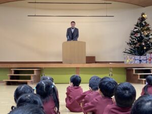 園長先生のお話をしっかりと聞き、2学期を振り返りました😊