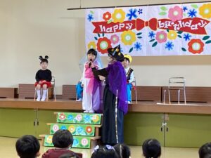 1月生まれのお友達の誕生会を行いました🎂各学年素敵な衣装に変身して登場してくれたお友達です✨インタビューでは「自己紹介」「大きくなったらなりたい夢」「好きな遊び」「好きな食べ物」をお話してくれました🎤